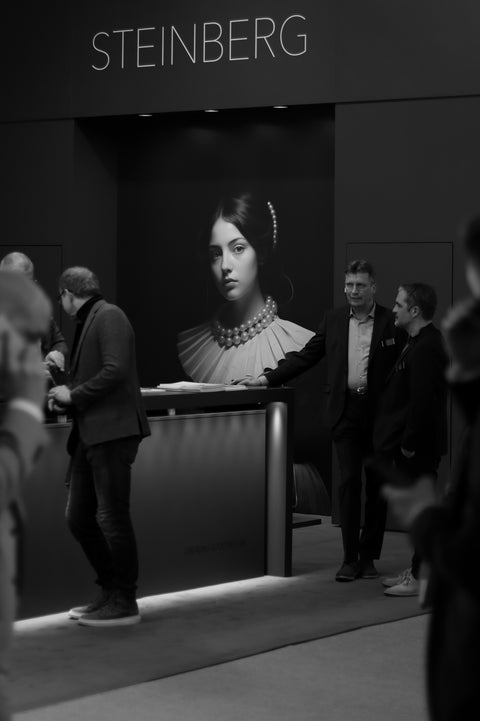 With a spectacular appearance at ISH 2025, Steinberg impressively demonstrated how trade fairs can be conceived today: not as a mere product presentation, but as an aesthetic statement. Several polyresin tubs dramatically staged by light, an oversized AI-generated portrait in the style of Dutch Baroque painting, and a peacock motif in a colonial jungle style – this interplay of art, technology, and design magically attracted visitors.