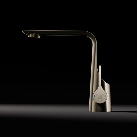 Jede Oberfläche der Marke Steinberg erzählt ihre eigene Geschichte, in der Licht und Struktur zu einer neuen Ausdruckskraft verschmelzen. Die neuen gebürsteten Oberflächen Brushed Copper, Brushed Gunmetal und Brushed Gold greifen dieses Prinzip auf und verleihen den Armaturen eine außergewöhnliche Tiefe.