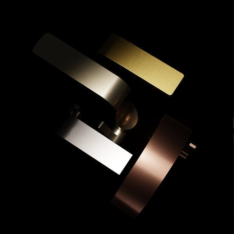 Die gebürsteten Oberflächen Brushed Gold, Brushed Copper, Brushed Gunmetal und Brushed Nickel verleihen den Armaturen eine besondere Tiefe und bringen ihre dynamische Linienführung eindrucksvoll zur Geltung. Durch die gezielte Lenkung von Lichtreflexen entsteht ein faszinierendes Spiel aus Licht und Schatten, das die hochwertige Verarbeitung und die präzisen Details der Designs unterstreicht.