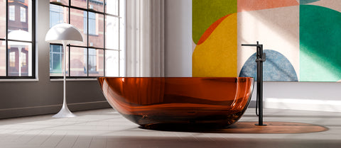 Rubin aus der Farbpalette der Polyresin-Collection verkörpert wie keine andere Farbe Kraft und Dynamik. Ihre tiefgreifende Intensität zieht den Betrachter unweigerlich in ihren Bann und verleiht den Waschtischen und Wannen eine einzigartige Aura.