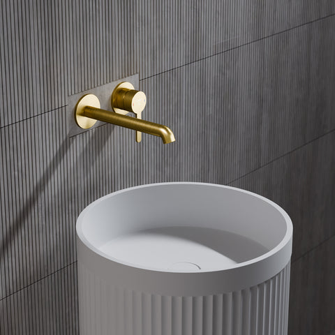 Die Serie 341 definiert sich über eine klare, zylindrische Formensprache. Alle Linien sind auf Präzision und Reduktion ausgelegt, wodurch ein konsequentes, modernes Erscheinungsbild entsteht. In Brushed Gold verstärkt sich dieser Eindruck: Die gebürstete Oberfläche bricht das Licht gleichmäßig und unterstreicht den skulpturalen Charakter der Armaturen. Das Ergebnis ist ein Design, das in seiner Strenge und Klarheit überzeugt und dem Raum eine starke visuelle Präsenz verleiht.