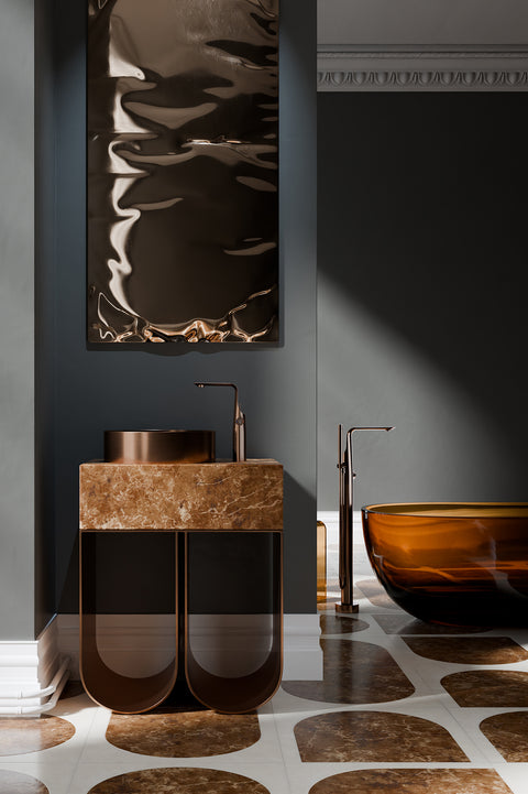 Strahlende Waschtische und Wannen aus Polyresin in der Farbe Amber