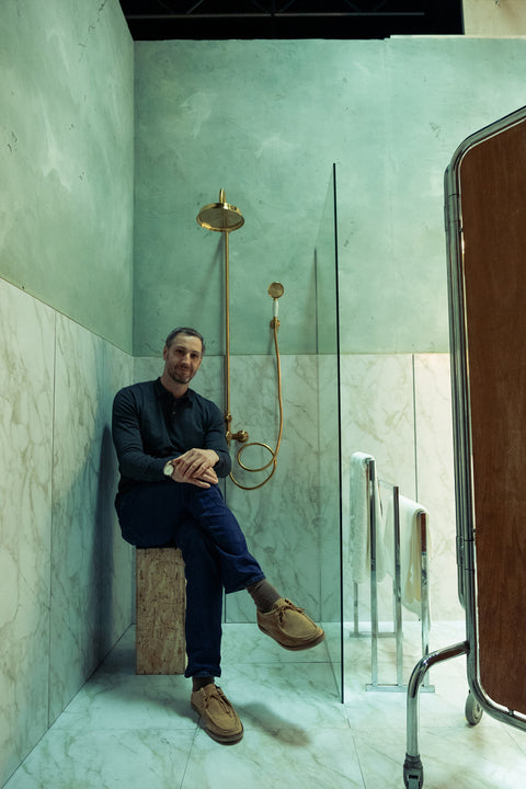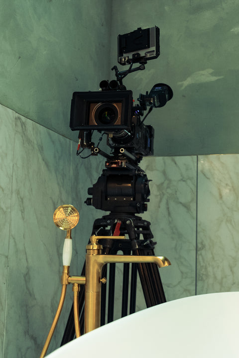 Das Design stammt aus der Vintage-Kollektion Serie 350 – formal reduziert, handwerklich präzise, subtil nostalgisch. Die Armaturen erscheinen nicht beiläufig, sondern in Schlüsselszenen – dort, wo Licht, Raum und Körper sich filmisch verdichten. Ein Design mit starker gestalterischer Präsenz – aber ohne aufdringlich zu wirken und sich nahtlos in das erzählerische Konzept einfügt.